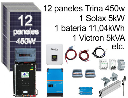 Pack 12 x 450w Paneles, 1 Batería, 1 Solax 5kVa, 1 Victron 5kVA