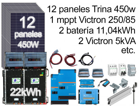 Pack 12 x 450w Paneles, 2 Baterías, 2 Victron 5kVA