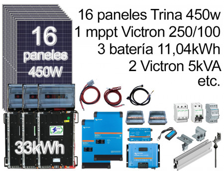 Pack 16 x 450w Paneles, 3 Baterías, 2 Victron 5kVA